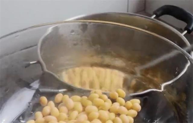 6.这会儿黄豆也煮熟了,捞出来沥干水分备用。