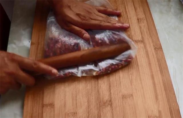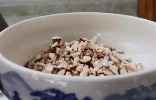 7.把炒熟的花生米碾成小一点的碎块,花生的皮可以去掉,也可以不去,再切点葱花和生姜末备用。