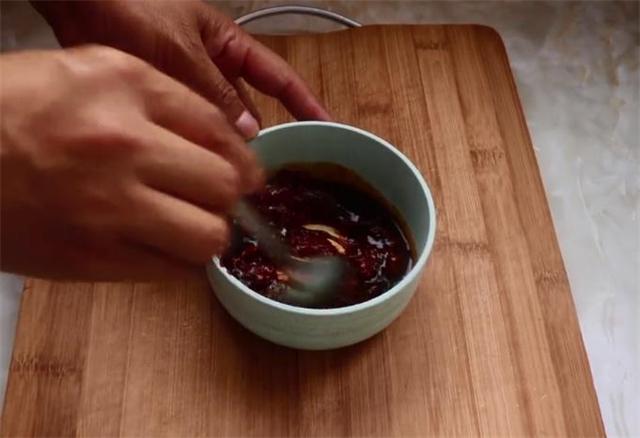 8.取个空碗,加入一勺豆瓣酱,一勺甜面酱,加入生抽搅拌均匀备用。