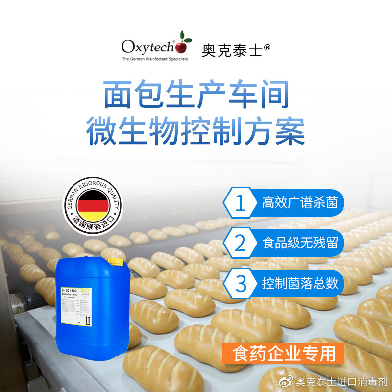 ▲奥克泰士具有广谱杀菌特点,在完成杀菌过程后分解为氧气和水,无需用水清洗,对环境无任何污染,广泛应用于烘焙、肉制品、淀粉制品、饮料加工等行业。
