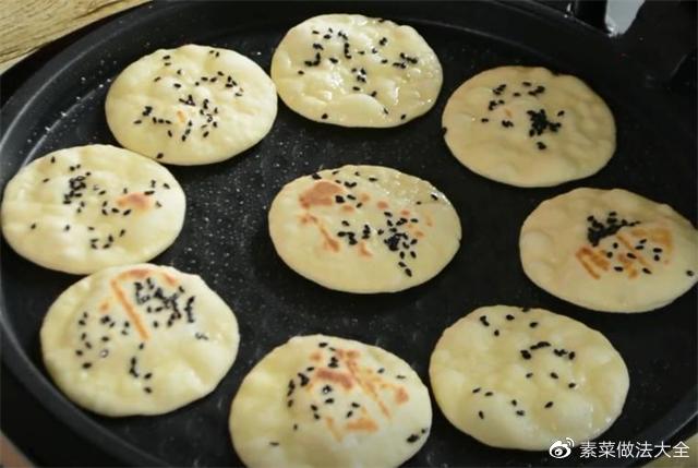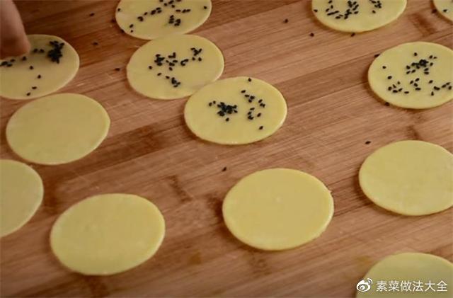 3.在每个小面饼上刷一层油,撒上黑芝麻。
