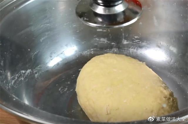 1.盆里倒入适量面粉,加入白糖,我们一边用筷子搅动面粉一边加入牛奶,搅成絮状之后用手把面揉至表面光滑,盖上盖子醒面30分钟。