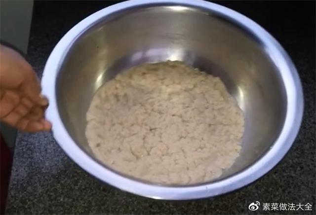 1.盆里面准备的是温水,水温大概是35度左右,里面加入适量的盐,然后一边用手搅,一边往盆里倒谷朊粉,谷朊粉是制作面筋的一种专用面粉,不想用谷朊粉的话,可以用高筋面粉洗面,一直搅着搅着,就会变稠,面筋成型后,倒掉盆里多余的水,然后盖住醒一个小时左右。