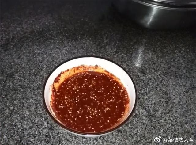 2.取个空碗,里面加入素蚝油、生抽、食用油,再加适量的凉开水、孜然粉、花椒粉、红辣椒面、白芝麻、少量的盐,搅拌均匀,烤面筋的调料就做好了。