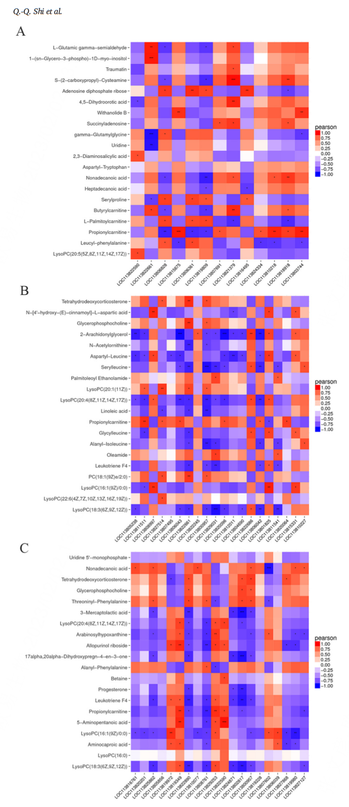 图4|前20个DEGs和DEMs的转录组和代谢组谱的综合分析