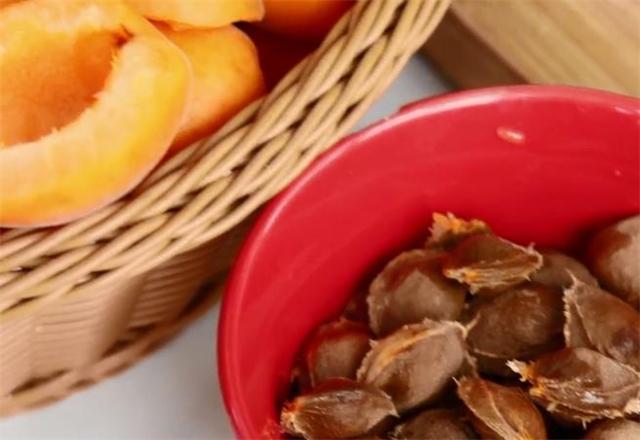 2.再挨个把杏子掰开,一分为二,我买的这个是这种大黄杏,掰的时候特别好掰开,把杏核单独放在一起,不要丢掉,这个杏核晒干以后,可以用来做其他美食。