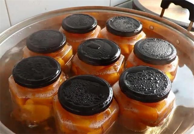 6.现在煮好了,趁热把罐头瓶拿出来,把瓶盖拧紧,再倒扣过来晾凉,晾凉后就是咱们平常吃的罐头了。
