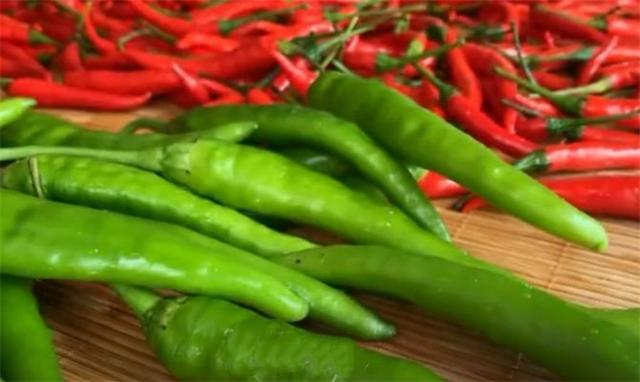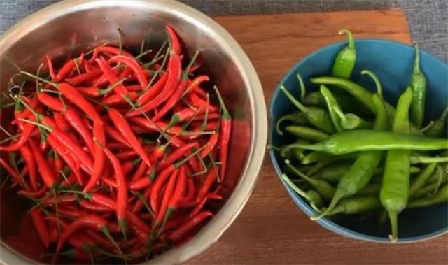 1.我今天买的是2斤小米辣,小米辣要选这种新鲜的,辅料是这种青色的杭椒,杭椒我买的是1斤,杭椒也要选这种新鲜的比较直的,小米辣和杭椒的比例是2:1。